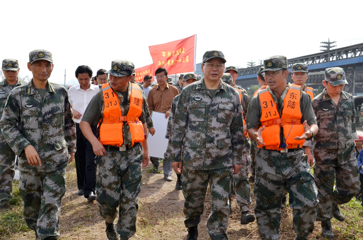 解放军东部战区陆军政委廖可铎(图中)高度赞扬九����� �������Ƴ������������ �������Ƴ������������ �������Ƴ����������� �������Ƴ�������江钢铁开渠泄洪勇担社会责����� �������Ƴ������������ �������Ƴ�������任(20160720)